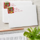 Card envelope with an insert of white snowflakes on holiday red background with Bells. Customisable return address too.