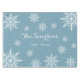 The pretty White Snowflakes on Slate Blue Winter Holiday Table Cloth can be personalised with a family name and year. Perfect to give a newlywed bride and groom as a keepsake wedding gift. This festive custom winter wonderland table wear features white intricate snowflakes with a slate blue background. Feel free to change the background colour to suit your individual needs.