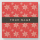 White Snowflakes, Red, Your name, Personalise Stone Coaster