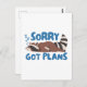 White Sorry Got Plans Funny Racoon Postcard
