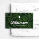 A textural background of a natural green leaf wall adds interest and visual aid to this professional business card featuring a spade logo combined with a unique signage font for your name or business name. Perfect for gardening services, nurseries, garden designers, landscapers, and more. © 1201AM CREATIVE