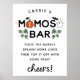 White Momosa bar sign for a Halloween themed baby shower with a pumpkin, ghost, leaves, bats, and stars.