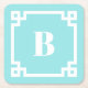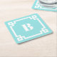 White Square Greek Key Border Aqua Blue Monogram Paper Coaster