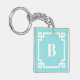 This Greek key monogram keychain combines chic design with functionality. Featuring a crisp white Greek key border and a vibrant aqua blue background, it can be personalized with your own monogram. Perfect for keeping your keys organized or as a thoughtful gift, this keychain adds a stylish flair to everyday essentials. It also makes a great gift for birthdays, anniversaries, or housewarmings.