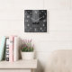 Clock with a white square clock face on a black and white bass guitar background. Customisable. Modern and trendy, yet classic, this clock is perfect for any decor.