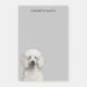 Image of a cute fluffy white Standard Poodle breed type dog with a teddy bear cut and placed in the lower left corner, set on solid pale gray. Personalize with your name or message in black minimalist font.