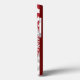 A phone case with a pattern of red and grey stripes radiating from the centre, overlaid with white stars.
