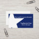 Image of the white star viewed partially. Dark blue background. White texts of the name, business name and a job title on the front side of the card. A red text of the business name, dark blue texts of the business slogan, address and contact info on the back side of the card. White background. Customisable elegant one-of-a-kind simple and trendy business card for anyone. You can change the image and all the texts. Feel free to use the Customise button to fine-tune the product to your needs, for example, you can choose different font types and colours, and change the colour of the background. Have fun.