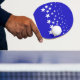 Twinkling star pattern with white stars on dark blue sky or space. Modern playful design.