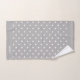 Elegant white star pattern on light silver grey Bath Towel Set. Name text can be personalised.