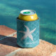 White Starfish Aqua Sea Glass Your Text Can Cooler