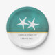 White starfish on teal stained beach wedding paper plate