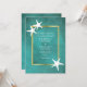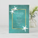 White starfish on teal stained paper beach wedding invitation