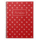 Modern and stylish personalised notebook with white star pattern on bright red.