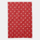 Modern and stylish kitchen towel with white star pattern on bright red.