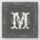 Cool white stars and sparkles square frame over black background and customisable monogram.