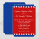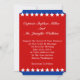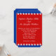 White Stars featured along top and bottom on the face of this basic paper invite created in Red over Royal Blue and White text. Royal Blue back which is plain. Simply choose selection menu at right to change to your information. Back is blank for additional text if needed for your driving directions. Customise this card further by choosing paper, text, colours etc.