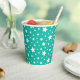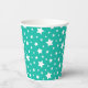 Paper cups featuring a white stars pattern against an editable background colour (click customise, go to the "Auto Warping, Wrap" layer and change the background colour)