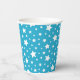 Paper cups featuring a white stars pattern against an editable background colour (click customise, go to the "Auto Warping, Wrap" layer and change the background colour)