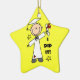 A male stick figure in a white cap and gown on a yellow background holds a diploma and text reads "I Did It!" on graduation T-shirts, bags, buttons, cards, stickers, keychains, and other items! You can add his name, school name, current year, and other text on the back of this keepsake graduate ornament to personalise it!
