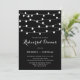 This elegant and whimsical rehearsal dinner invitation features white hanging fairy lights on a black background. Personalise by adding your details. This black and white rehearsal dinner invitation is perfect for outdoor and fall weddings.