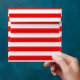 Horizontal white stripes on the outside of a coloured envelope. You can use any of the colours in the system to coordinate with the white stripes.