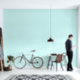 White Striped Light Teal Colour Tile Style Design Wallpaper