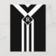 Bold mostly black geometric pattern features three alternating white and black chevrons that end at a black diamond outlined with white. It looks like a stylised medal hanging from a ribbon. The diamond contains a customisable monogram. Three white stripes extend from the bottom of the diamond to the base of the vertical design. The outer thirds of the image are black.