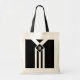 White Stripes and Chevrons on Black with Monogram Tote Bag