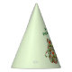 White stripes pattern and cute baby floral elephant- happy birthday. Customisable party hat template