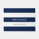 Welcome doormat featuring white stripes and editable background colours (click customise and change the background colour). This doormat is perfect for vacation homes, vacation rentals, bed and breakfasts, etc.