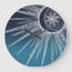 White Sun Moon Mandala Blue Gradient Design Large Clock