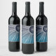 White Sun Moon Mandala Blue Gradient Design Wine Label