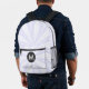 White Sunburst Monogrammed Black Circle Printed Backpack