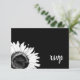 Pair the pretty White Sunflower on Black Wedding RSVP Response Card with the matching marriage invitations to create a coordinated stationery set. This elegant custom floral r.s.v.p. reply card features black and white sunflowers adorning the corners with a black background.