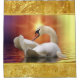 White Swan in a lake with a orange gold sunset. With a gold foil texture background.