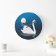 WHITE SWAN FLOATING IN WATER WITH A FULL MOON