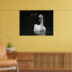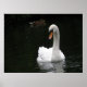 This poster features a photograph of a beautiful white swan with a bright orange beak. The swan is a Mute Swan (Cygnus olor) and was photographed in the UK. It is gently gliding across the water and looks very serene.