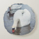 White swans symbolise love, devotion, beauty and grace. Round pillow featuring a peaceful winter scene will be an elegant accent to your home's decor or a stylish gift for any occasion (Saint Valentine's Day, Mother's day, Grandparents Day, birthday).