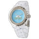 This awesome watch features a digital art image of a pair of beautiful white swans with orange becks facing each other looking like they are kissing. Underneath the swans is a group of pretty pink water lily flowers with yellow centres and green lily pads. A beautiful wedding design. There is custom text so you can include the names of the happy couple.