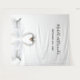 Two beautiful swans in love bending their heads toghether and forming a heart. White elegant background. Template for the bride and groom's names and the wedding date. Black letters. A swan couple stay together for life, so they are the perfect symbol of love. Can be used as a welcome banner or a photo backdrop.