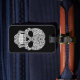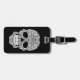 White Swirling Sugar Skull on Black Luggage Tag