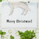 Destei's original cartoon illustration of a cute White Swiss Shepherd / white colour German Shepherd breed dog. The dog is placed in a winter scene with three green fir trees and falling snow. The background is a blue to white gradient giving the design that cold winter day look. There is also a personalizable text area that now reads: "Merry Christmas!".