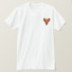 This image features a white short-sleeve T-shirt with a small embroidered phoenix design on the left chest area. The phoenix is depicted in vibrant shades of red, orange, and yellow, symbolising rebirth and strength. The T-shirt has a classic crew neck and a comfortable fit, making it a versatile piece suitable for casual wear. The minimalistic yet striking design adds a touch of style without being overwhelming.