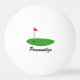 White table tennis ping pong ball for golf player. Add your own custom name, quote or monogram. Funny personalised gift idea for golfer, sports coach, instructor, dad, friends, family, kids etc. Fun games for men, women and kids. Putting green, ball and flag design.