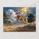 A dynamic painting of a white-tailed deer buck leaping through a scenic landscape, perfect for wildlife enthusiasts.