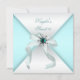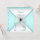 Pretty teal blue and white jewel bow teal blue sweet sixteen birthday party invitation. Add your details to the front and back by simply choosing the orange "Customise it!" button to begin adding your event details, font style, font size & colour, and wording. Please note - all of the invitation designs you will find on Zazzle are printed graphics with no actual jewels, bows, raised, embossed, or added parts or pieces.