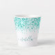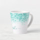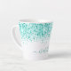 A stylish white background, decorated with teal, sea green faux glitter dust. Personalise and add your name written with a trendy hand lettered style script with swashes.