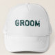 White teal lettering theme Groom hat