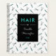 Spiral planner or appointment book in black, white, and turquoise with a pattern of scissors and combs against a white background. Hair by, and add your name and the year, in turquoise and white.